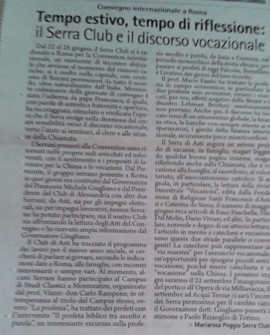 Articolo pubblicato sulla GAZZETTA D'ASTI