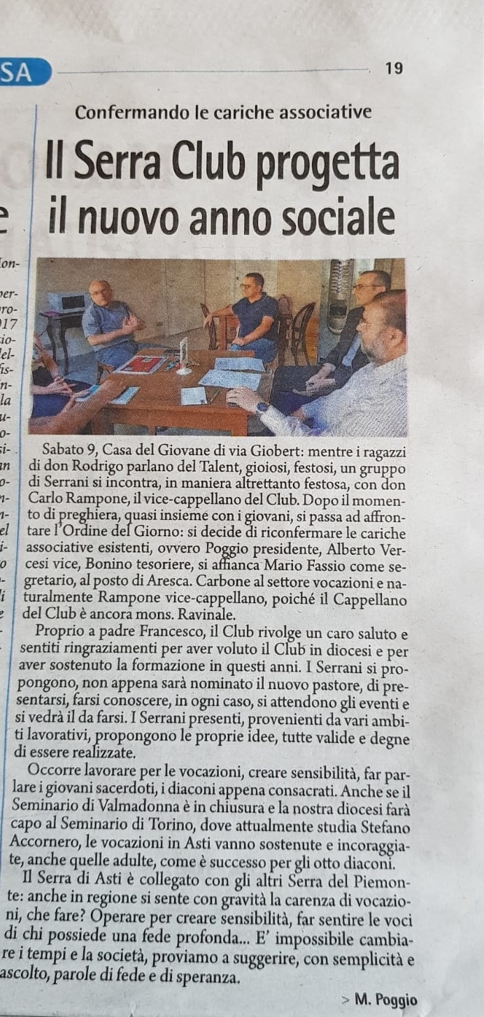 Giovedì 30, presso la chiesa di San Paolo ad Asti, il Serra Club si è radunato con l'assistente don Carlo Rampone, per iniziare a pensare ai progetti dell'anno, partendo dalla celebrazione eucaristica. Leggi l'articolo completo